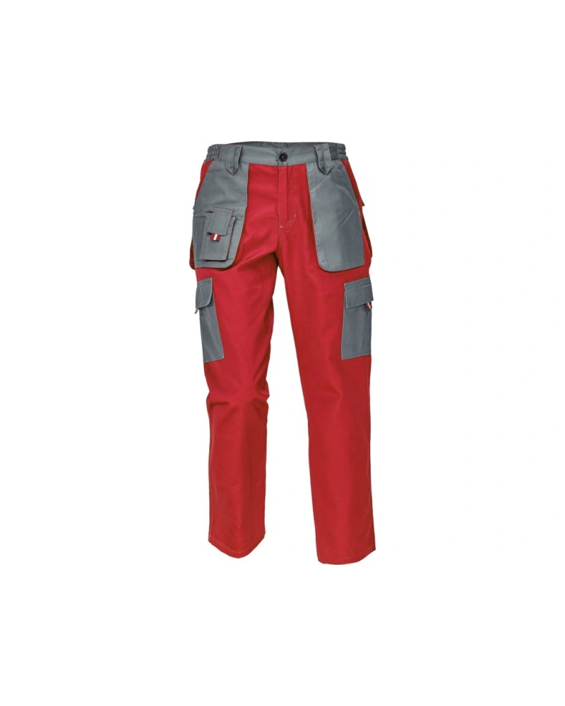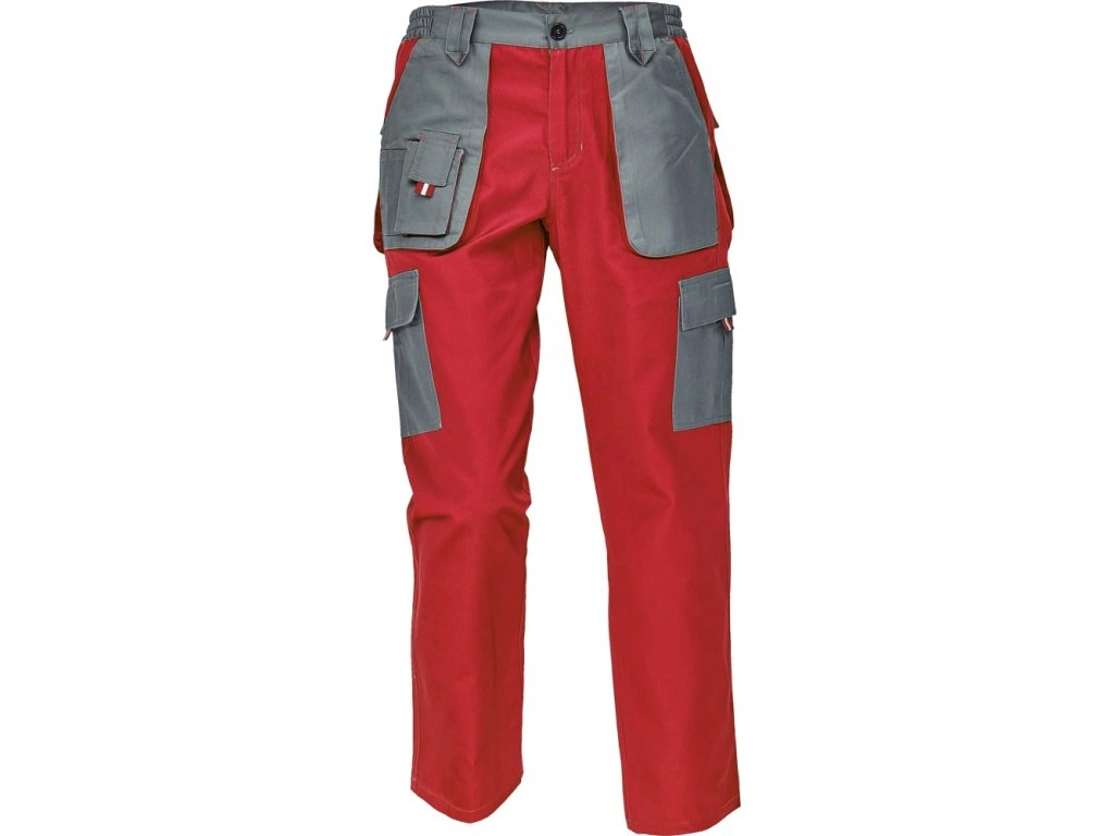 Montérky v kontrastním dvoubarevném provedení. Kvalitní zpracování, dvojité prošití švů. Extra hluboké vakové přední kapsy, zadní kapsy, pevný pas s poutky na opasek, malá kapsička a boční kapsy s klopou. Na táhlech kapes našity reflexní prvky. V bocích kalhot pruženka. Vyrábí se i v prodloužených délkách a dalších barevných kombinacích. Dobrý poměr kvalita/cena.