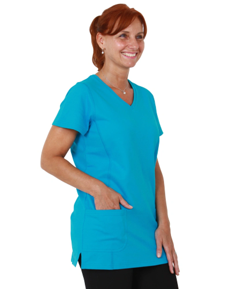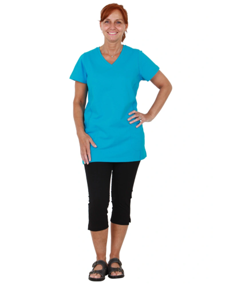 Dámské prodloužené triko s kapsami, mírně projmuté, rozparky na bocích.Více informací