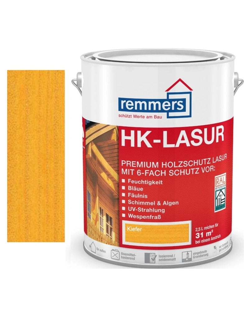 - HK-LASUR proniká hluboko do dřeva, odpuzuje vodu, díky mikroporézním vlastnostem umožňuje dřevu dýchat a reguluje vlhkost. Navíc vyniká svou 6-ti násobnou ochranou vůči vlhkosti, modrání, hnilobě, plísni, řasám, hmyzu či UV záření.