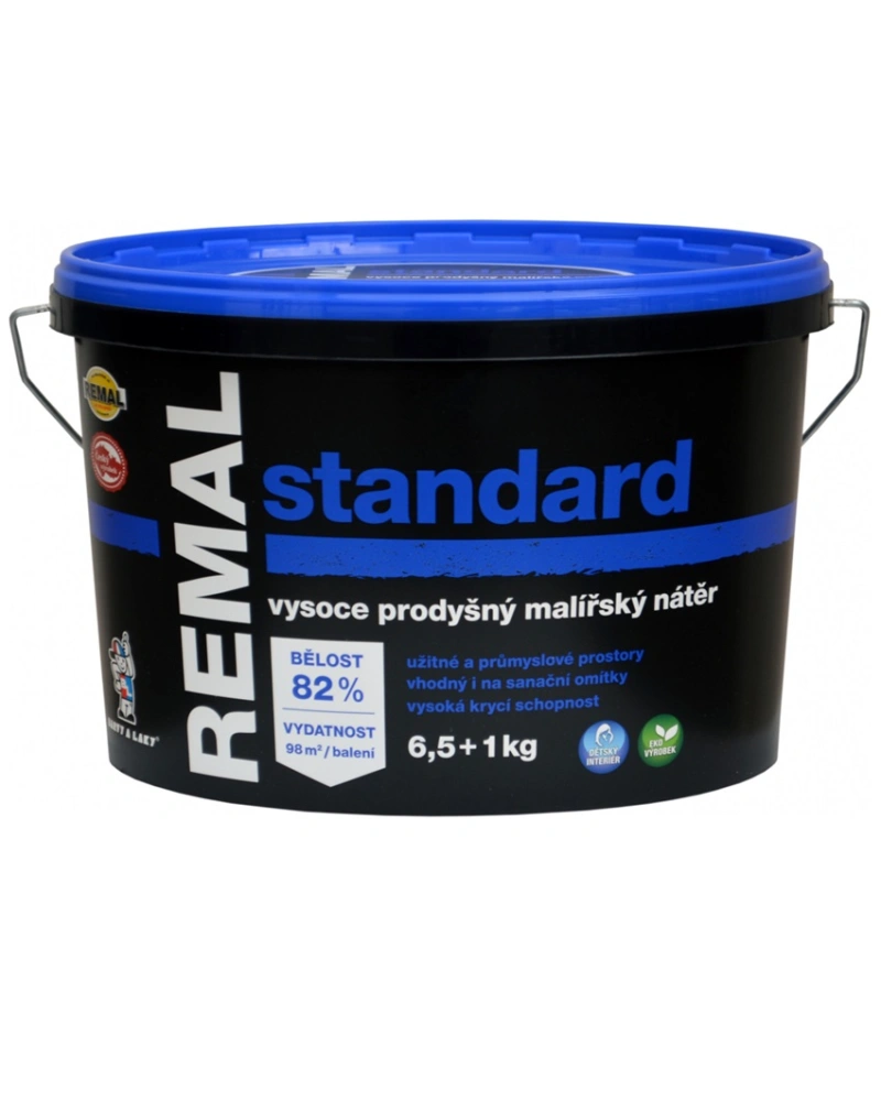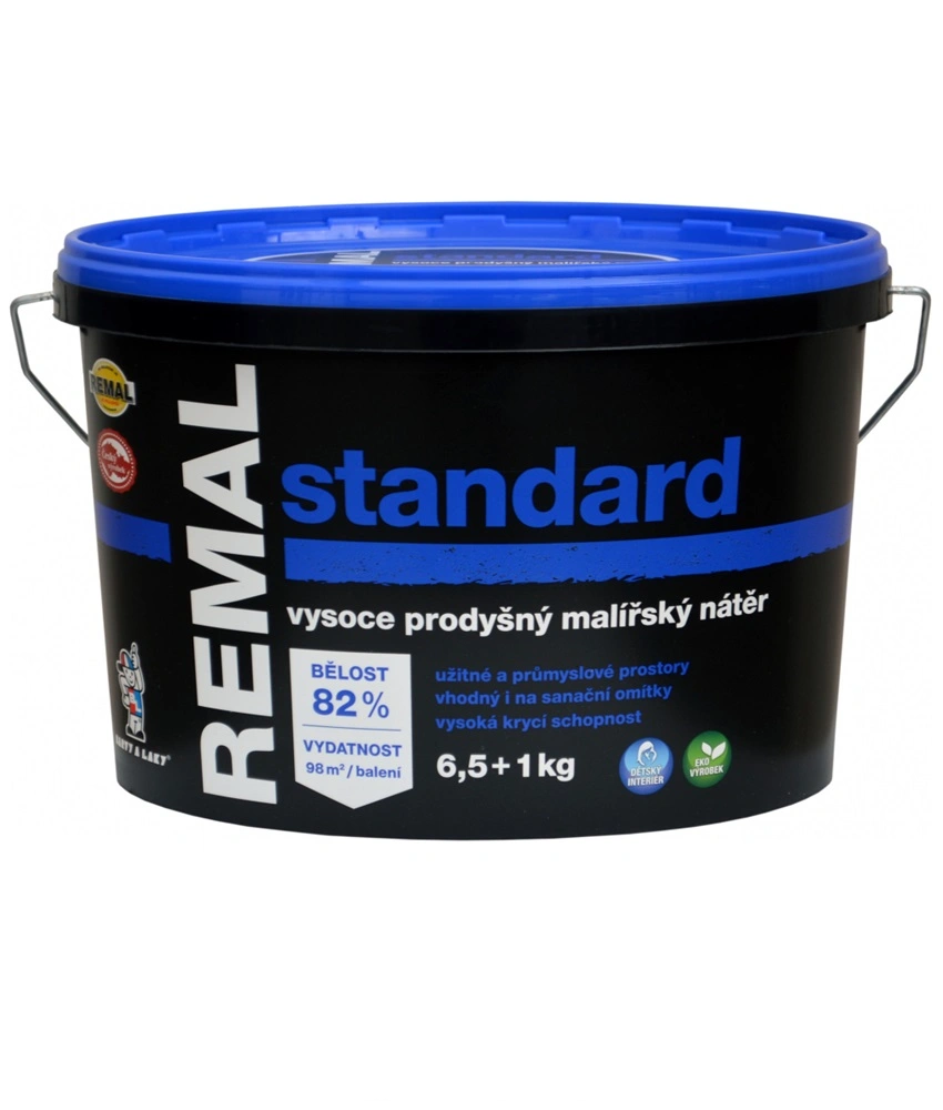 Remal Standard je klasická přírodní vodouředitelná kaolínová malířská barva. Výborně kryje, je prodyšná, otěruvzdorná a má standardní bělost 82 %. Používá se k malování omítek, betonu, sádrokartonu, cetris desek, dřevotřísky i sanačních omítek v interiérech. Barva vykazuje odolnost proti oděru za mokra – měřeno dle ČSN EN ISO 11998 – třída 5. (klasifikace dle EN 13300). Je doporučen pro nátěry užitných a průmyslových prostor. Používá se k malování stěn i stropů v interiéru na omítky, sádrokartony a jiné podklady. Je snadno zpracovatelný, zdravotně nezávadný a ekologicky příznivý.