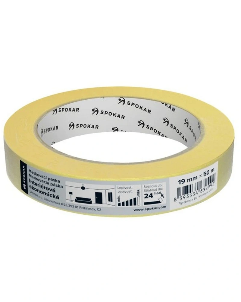 Papírová maskovací páska, rozměr : 19 mm x 50 m, použití : k ochraně proti znečištění, k vytvoření přesných a rovných hran - barevných přechodů při malování.