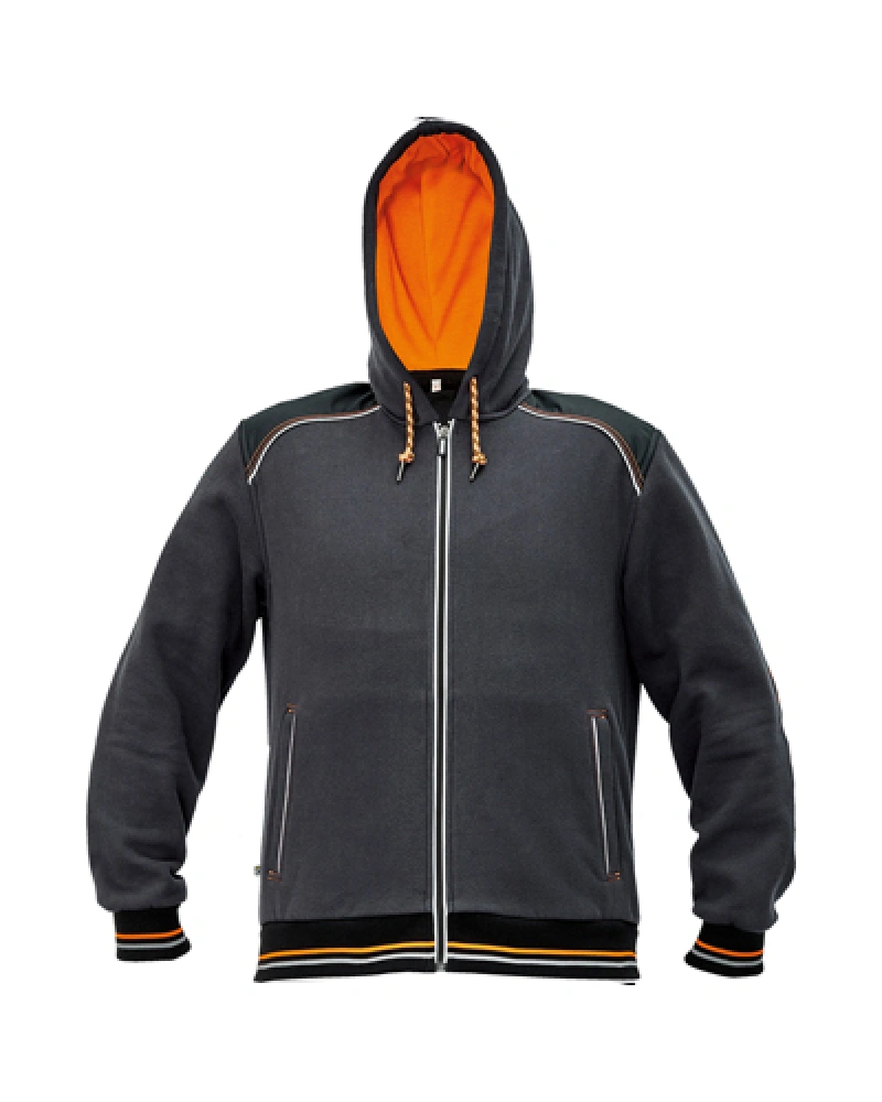 Mikina s kapucí. Zesílená oblast ramen a loktů, reflektivní paspulka lemující sedlo a lištové kapsy. Dvojitá kapuce s kontrastním úpletem. Pružné náplety na rukávech na spodním obvodu.Více informací