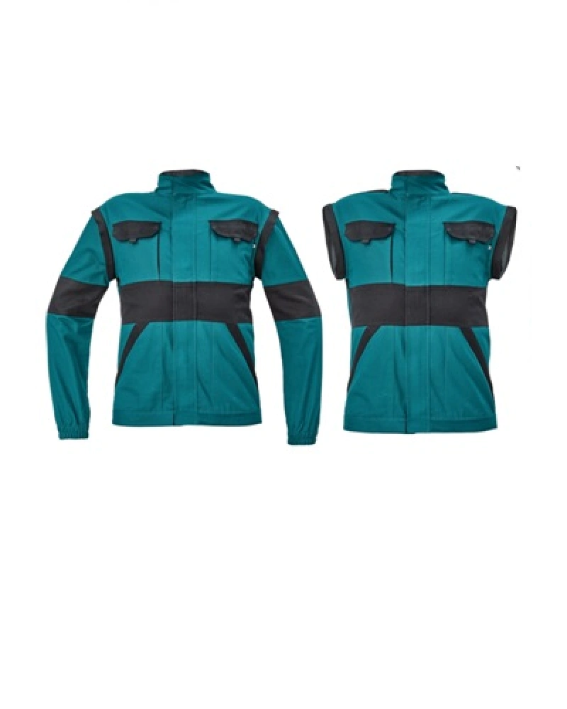 Pánská pracovní bunda se zapínáním na zip krytým légou, odepínatelné rukávy, 2 přední kapsy, 2 náprsní kapsy, zesílení namáhaných míst loktů a ramen, pružné manžety rukávů a spodní obvod v pase.Více informací