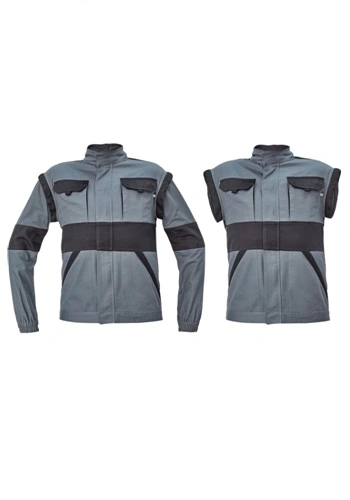 Pánská pracovní bunda se zapínáním na zip krytým légou, odepínatelné rukávy, 2 přední kapsy, 2 náprsní kapsy, zesílení namáhaných míst loktů a ramen, pružné manžety rukávů a spodní obvod v pase.Více informací
