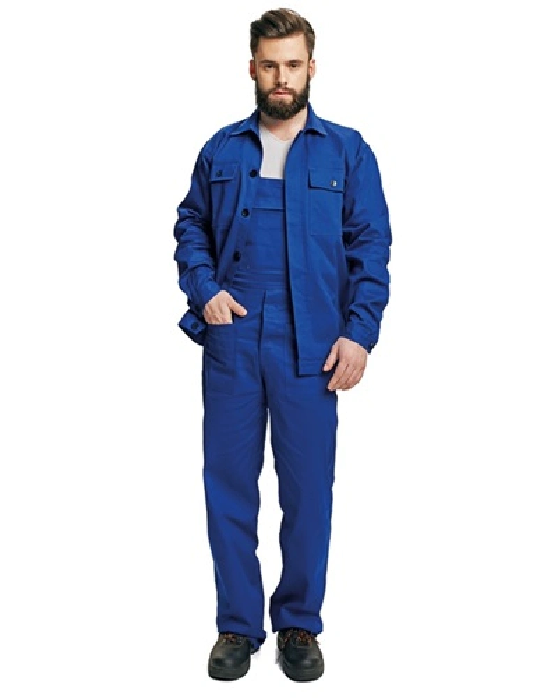 Montérková bunda a kalhoty s laclem v základním provedení, bunda má zapínání na knoflíky a 2 kapsy, kalhoty s laclem mají 4 kapsy, na boku kapsa na metr.Více informací