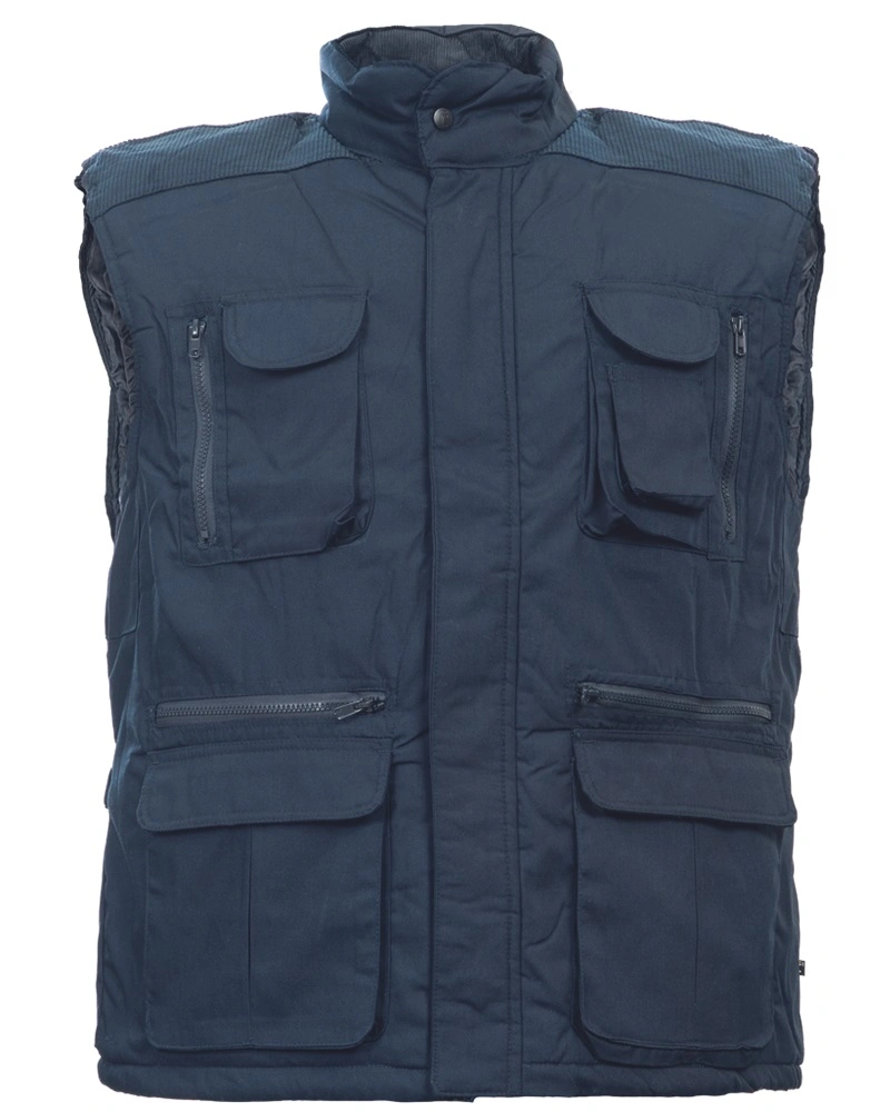 Pánská lehká vesta z T/C twillu 190 g /m2, částečně podšitá nylonovou síťovinou , 11 kapes, z toho 2 na zádech a 1 na mobil, zapínámí na zip, atraktivní design kamufláž.