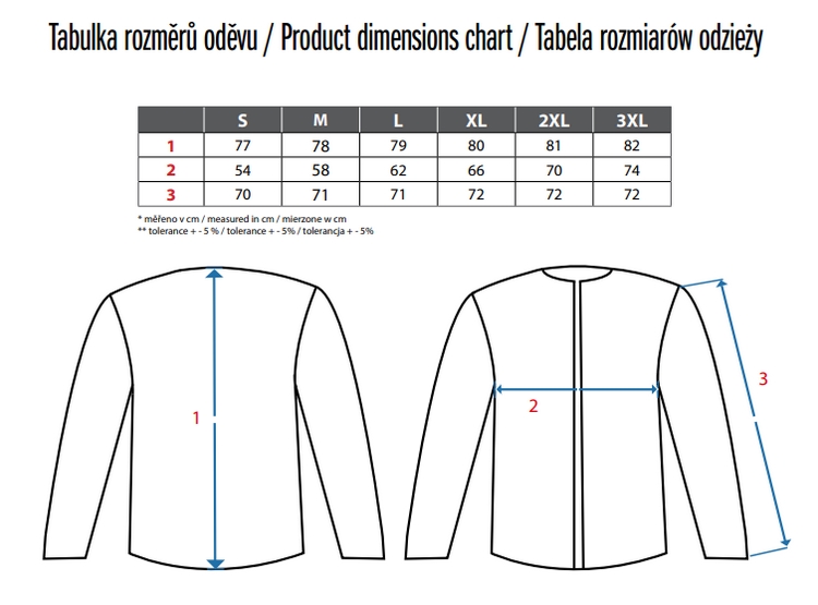 Výstražná zateplená bunda do pasu, 2v1, odolná proti vodě a větru, reflexní pruhy, lepené švy, zapínání na zip krytý légou, odepínací rukávy s regulovatelnými manžetami, kapuce v límci, fleecový vnitřní límec, v délce pružný pas, na levém rukávu kapsa na zip, 2 spodní kapsy, dvě náprsní kapsy kryté patkou na suché zipy, na pravé straně našitá malá kapsa na mobil a 3 tunely na tužky, na levé straně poutko na přichycení ID karty, jedna vnitřní kapsa. Uvnitř je zip pro snadnou aplikaci výšivky na vnější stranu bundy.