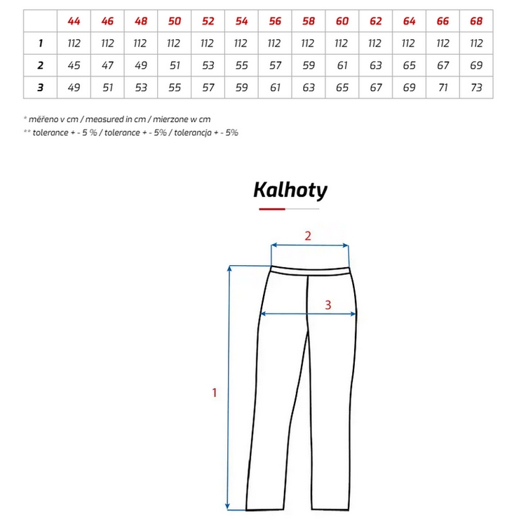 Dámské montérkové kalhoty, pas s poutky na opasek, pas na bocích do gumy (od velikosti 50), přední vakové kapsy, boční multifunkční kapsa, zadní dvojité kapsy, reflexní doplňky.