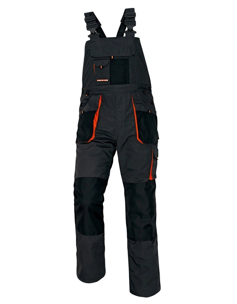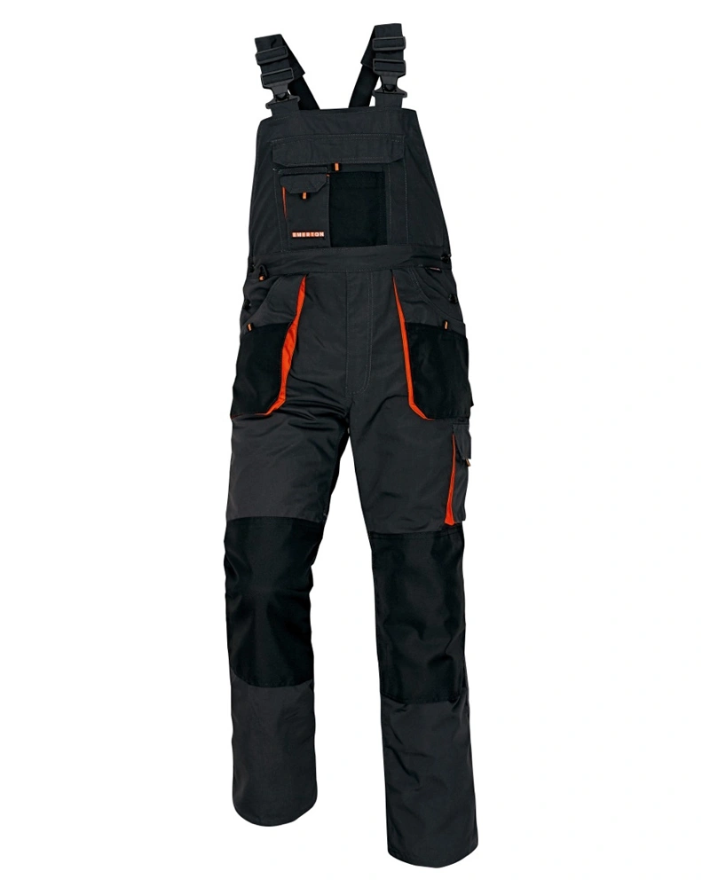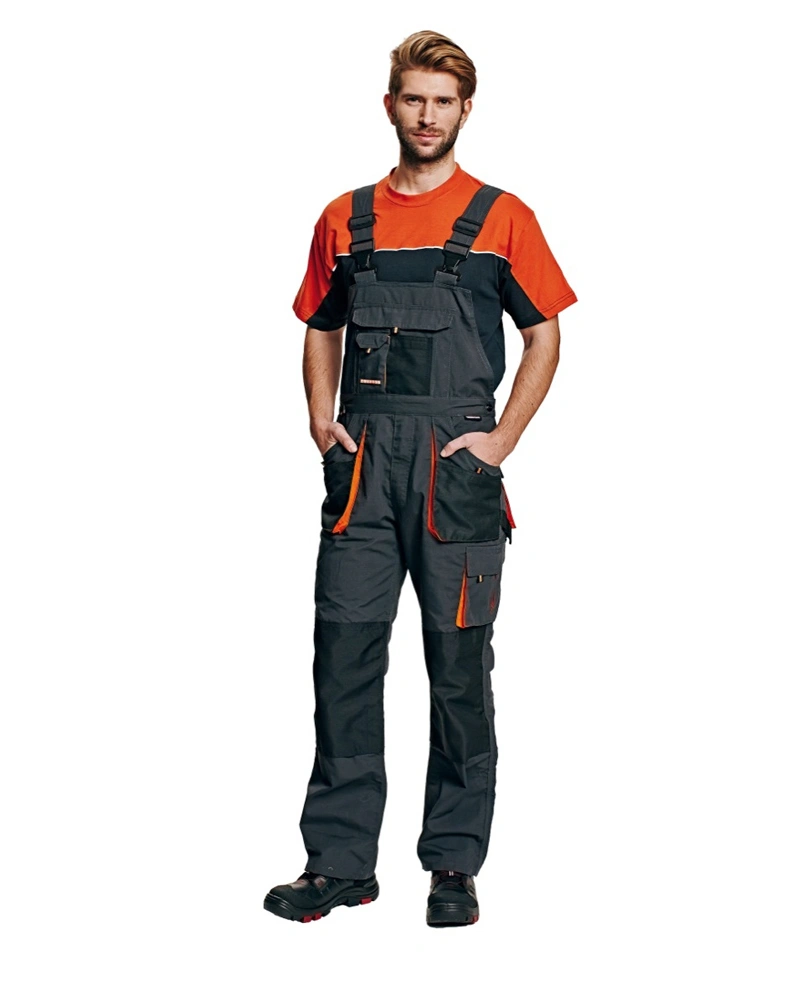 Pánské pracovní kalhoty s laclem a elastickým pasem, široké šle s plastovými sponami. 2 přední kapsy, 1 stehenní kapsa, 1 velká náprsní kapsa, 2 zadní kapsy. Reflexní pruhy na spodní části nohavic, zesílená oblast kolen, nastavitelná délka nohavic.