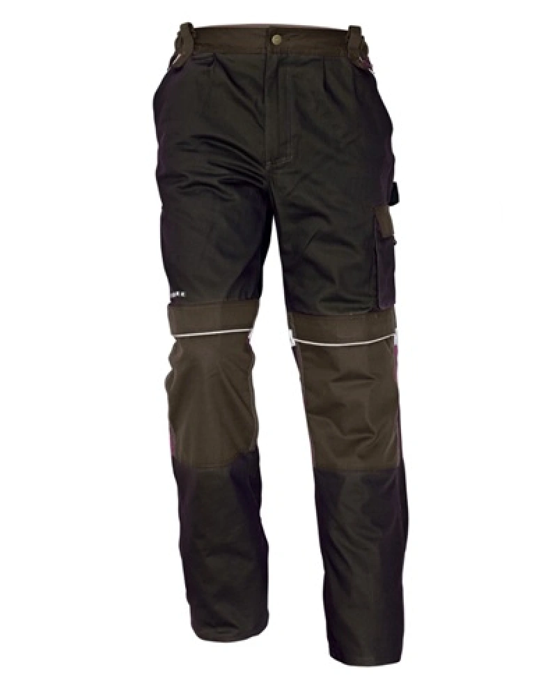 Kalhoty pohodlného střihu a vysoké odolnosti, reflexní doplňky, zesílená zdvojená kolena pro vložení nákoleníků, kovové zipy a druky, poutko na kladivo, 4 poutka na drobné nářadí.Více informací