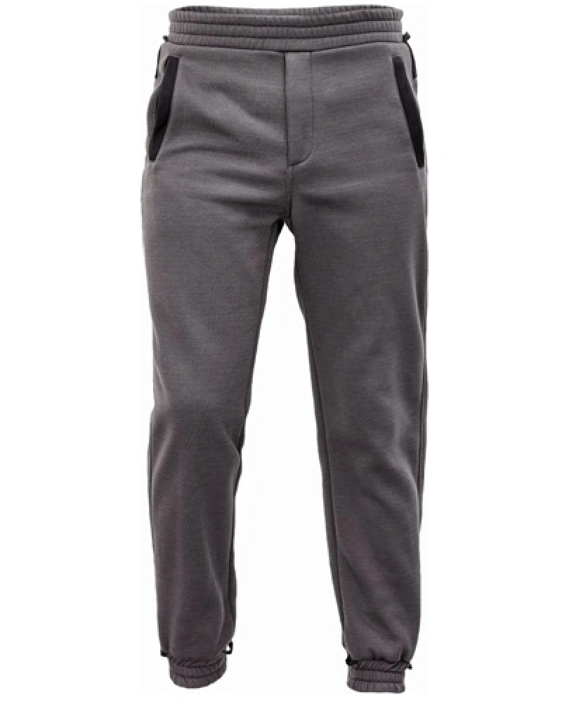 Tepláky s pružným pasem a spodním lemem nohavic. Postranní kapsy, poklopec na zip.Více informací