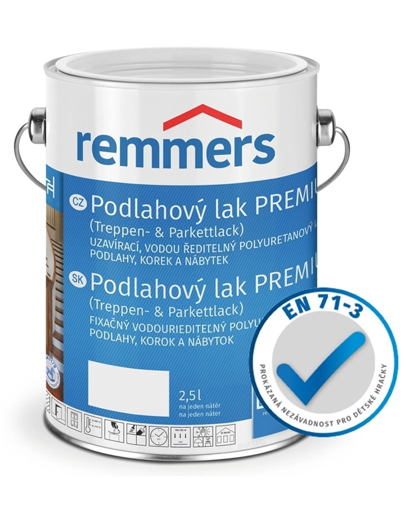 Polyuretanový podlahový lak REMMERS PREMIUM je určený pro nátěr dřeva v interiéru Vodou ředitelný lak použijte v interiéru na nátěr dřevěného nábytku, dveří, palubek, parket a schodů. Vhodný i k ochraně korkových podlah, dřevěných obkladů zdí a stropů.