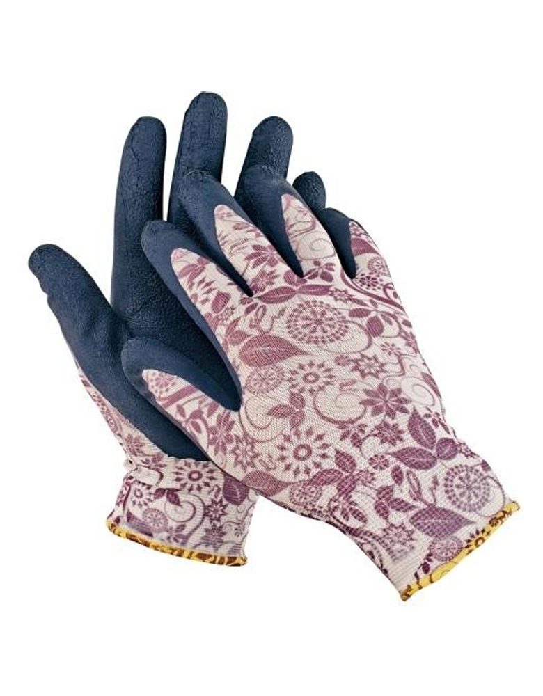Rukavice šité z bavlněného úpletu, polomáčené v nitrilu a s pružným nápletem.