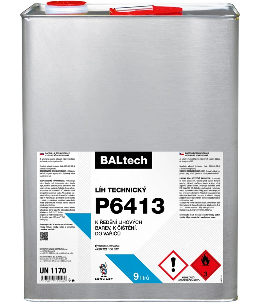 Denaturovaný etanol. Líh technický je určen k ředění lihových nátěrových hmot, k čištění, do lihových vařičů.
